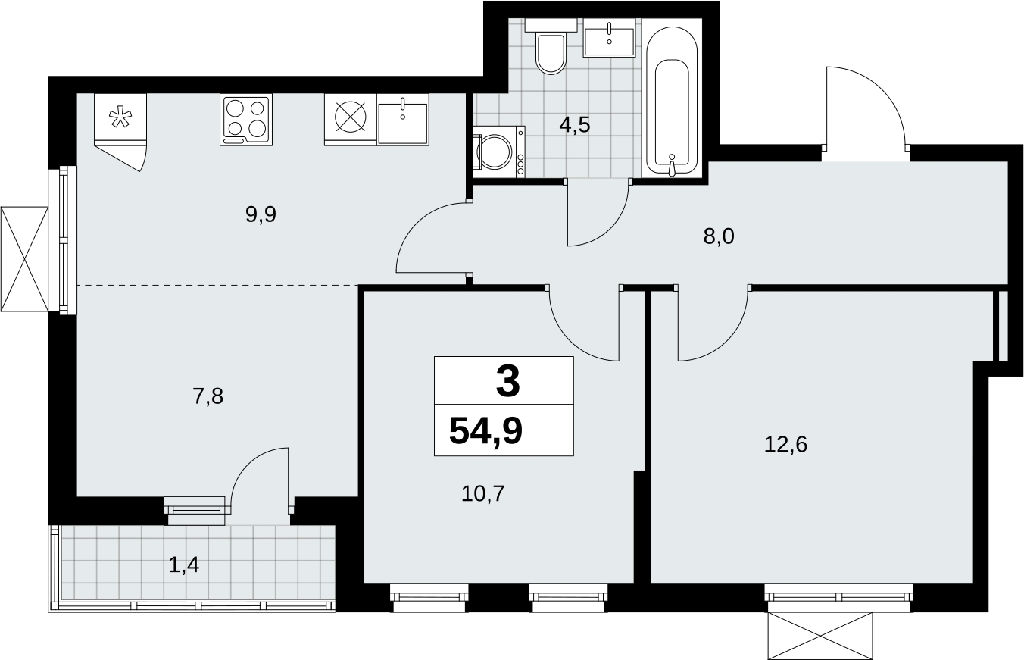 Продаю трехкомнатную квартиру с европланировкой площадью 54.9 кв.м., без отделки, на 6 этаже из 9 в жилом комплексе комфорт-класса "Дзен-кварталы". Квартира угловая, а окна, выходящие на разные стороны дома, дают paвнoмepнoe ocвeщeниe комнат в тeчeниe дня. В квартире одна лоджия, один совмещенный санузел. Высота потолков 2.8 м.