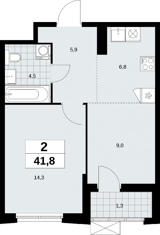 Продаю 2-комн. квартиру с европланировкой площадью 41.8 кв.м., без отделки, на 17 этаже из 23 в жилом комплексе комфорт-класса "Дзен-кварталы". Изолированные комнаты, все окна выходят на одну сторону. В квартире одна лоджия, один совмещенный санузел. Высота потолков 2.8 м.