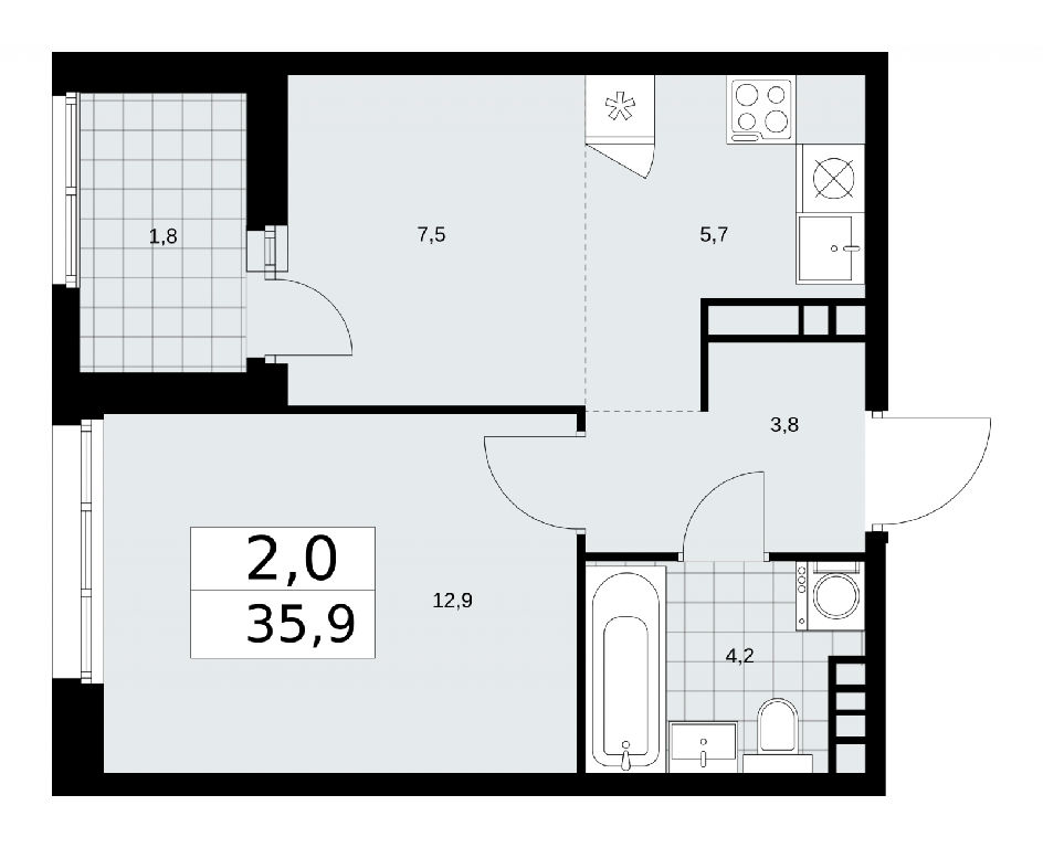 Продаю двухкомнатную квартиру с европланировкой площадью 35.9 кв.м., без отделки, на 18 этаже из 24 в жилом комплексе комфорт-класса "Дзен-кварталы". Изолированные комнаты, все окна выходят на одну сторону. В квартире одна лоджия, один совмещенный санузел. Высота потолков 2.95 м.